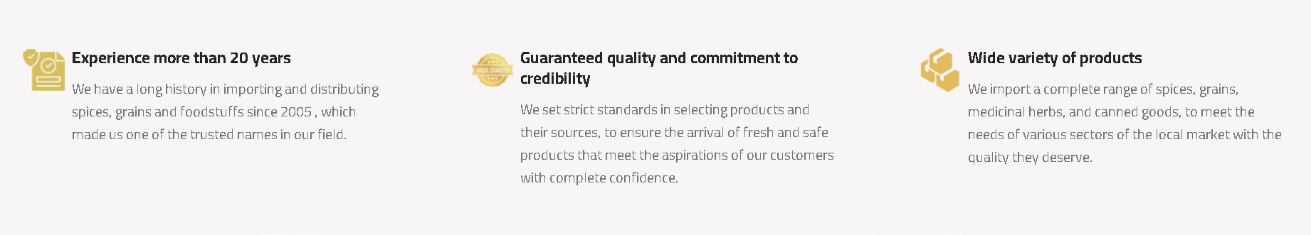 One of the largest companies specializing in importing and selling spices, grains and foodstuffs in Saudi Arabia since 2005.